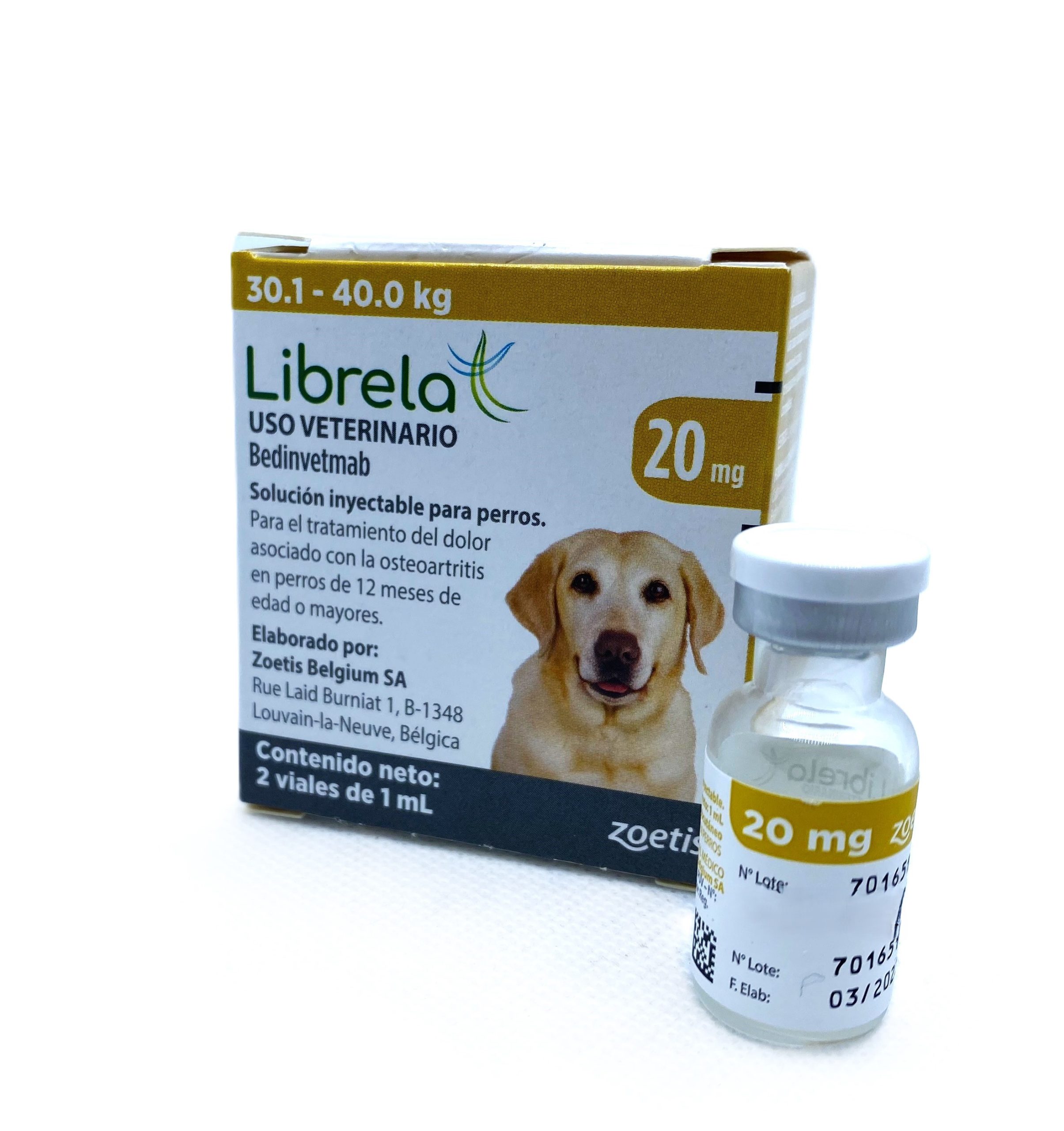 Consiste en la primera terapia inyectable basada en Anticuerpos Monoclonales para el tratamiento del alivio del dolor provocado por la osteoartritis (OA) en la especie canina. Librela pone el tratamiento del dolor de la OA canina mediante su administración mensual en la clínica.